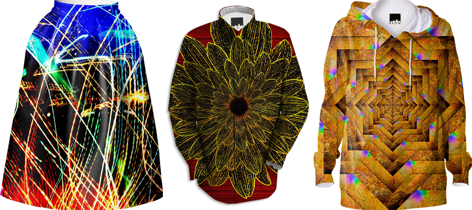 Each design is available on a selection of garments, which can be viewed in the store.